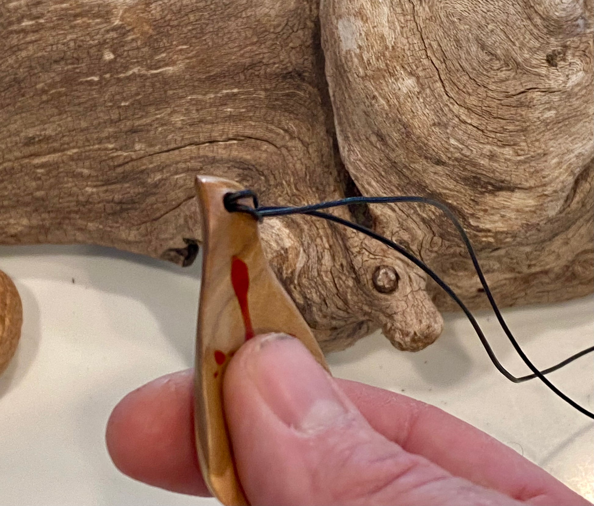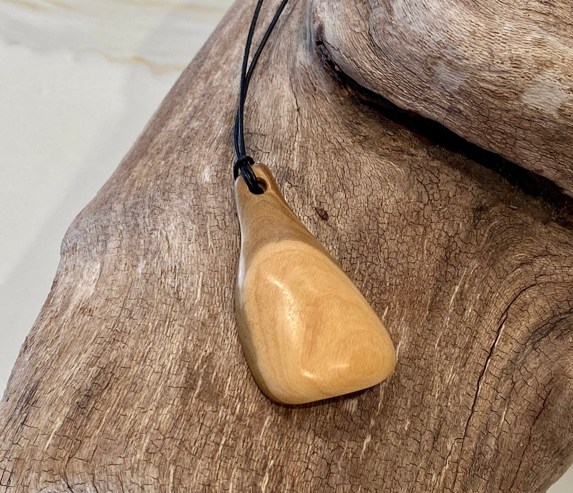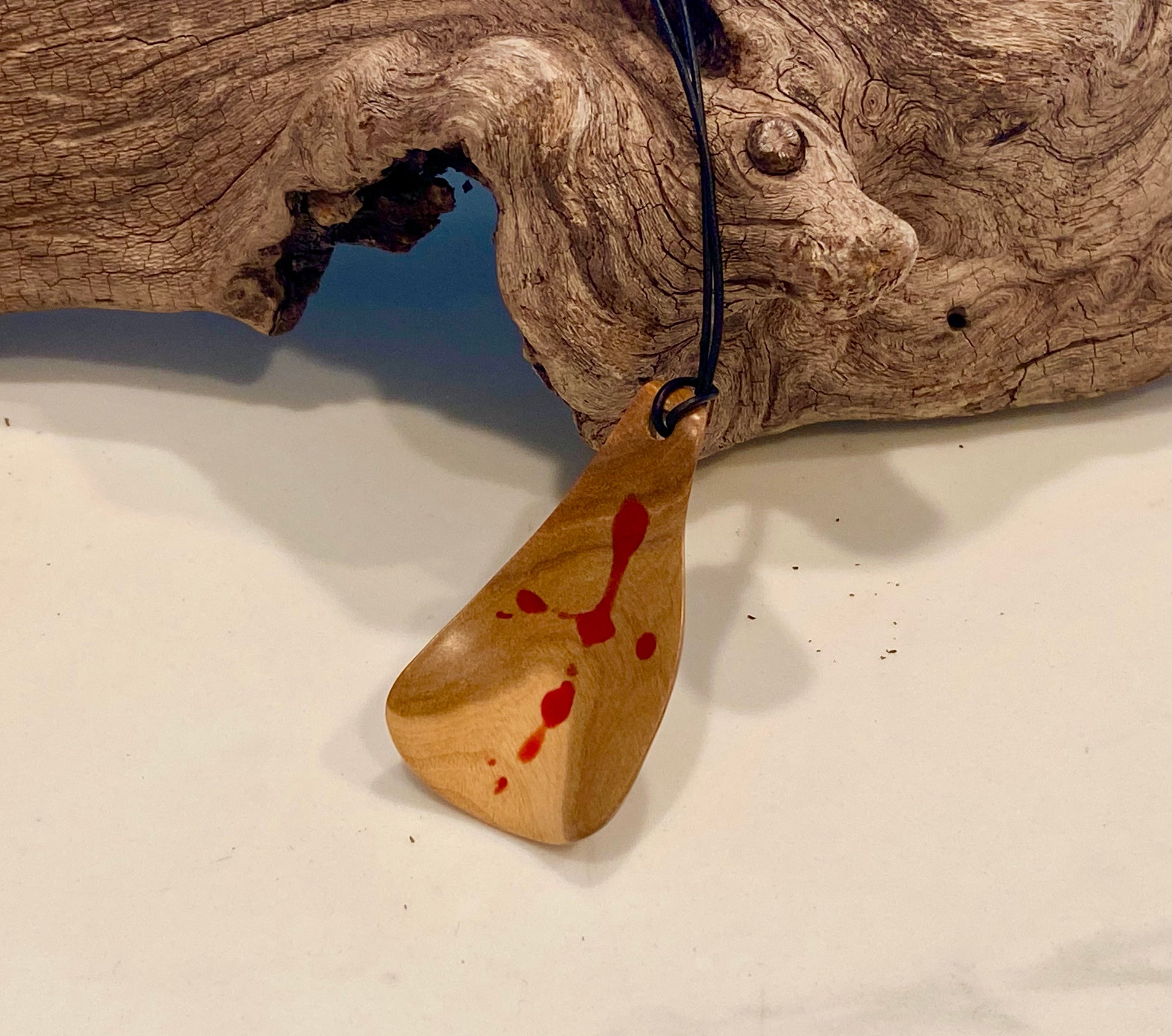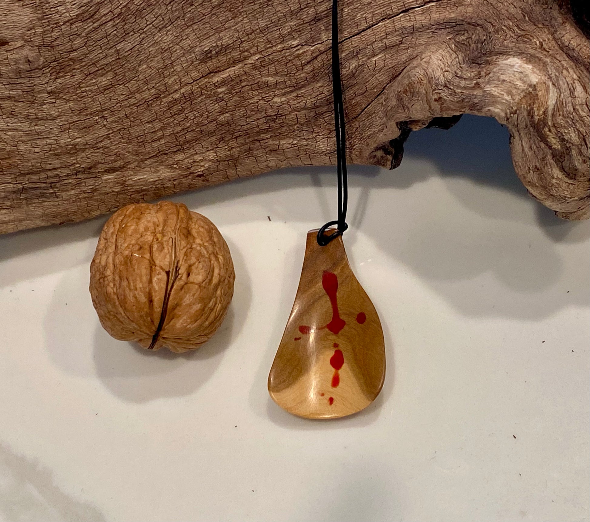 Soothing like a worry stone, hand polished pendants are carved and filled with pigmented resin. Designed for soothing tactile sensation. Ergonomically carved and polished to fit the thumb and forefinger. Finish buffed with carnauba wax. Has adjustable 1 mm leather cord.